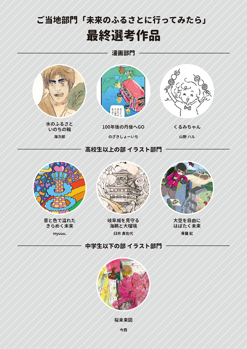 「淡路島日本遺産部門」では、淡路島に息づく歴史や文化を背景に、金属時代の幕開けをもたらした「海の民」や、塩づくり・航海術によって王権を支えた「海人(あま)」など、海と共に生きてきた人々の営みや物語をテーマとし、日本遺産の魅力を自由な発想で表現した作品を募集いたしました。また、「ご当地部門」では「未来のふるさとに行ってみたら」をテーマに、地域に根づく文化や暮らし、自然や人のつながりに目を向け、読者が「行ってみたい」「帰ってみたい」と感じる、未来に受け継がれていく“ふるさとのかたち”を描いた作品を募集いたしました。